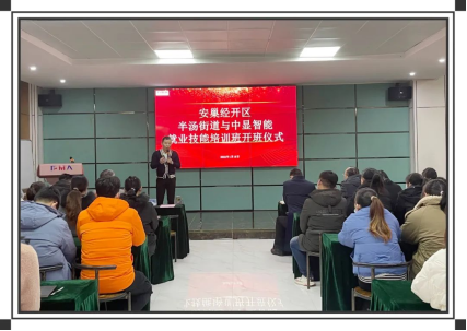 為提升安巢經(jīng)開區(qū)內(nèi)廣大勞動者就業(yè)技能,做好公司及區(qū)內(nèi)相關(guān)企業(yè)的人才儲備,在安巢經(jīng)開區(qū)半湯街道的大力支持與主導(dǎo)下,1月18日上午,半湯街道與中顯智能就業(yè)技能培訓(xùn)班在中顯智能電教室順利開班。區(qū)人社局張奮翔主任、半湯街道徐勇書記及相關(guān)負(fù)責(zé)人、安巢經(jīng)開區(qū)就業(yè)創(chuàng)業(yè)一站式服務(wù)中心負(fù)責(zé)人宋玉萍、中顯智能負(fù)責(zé)人,以及半湯街道27名培訓(xùn)學(xué)員參加了此次開班儀式。